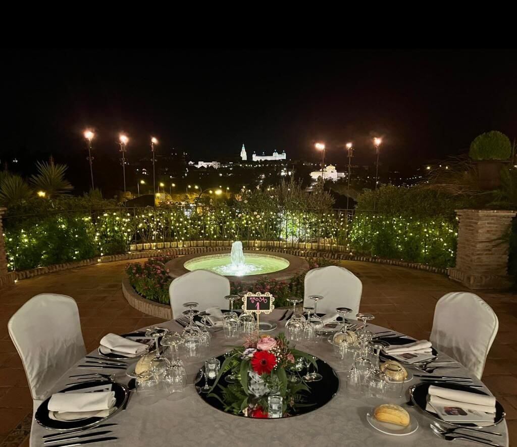 Más que un simple espacio para eventos, el cigarral es una joya arquitectónica restaurada, con jardines exuberantes, terrazas con luz natural y salones que permiten imaginar cada momento de vuestra boda tal como siempre lo habíais soñado. Ya se trate de una ceremonia al aire libre con el sol acariciando el paisaje o un banquete elegante con vistas al casco histórico, el entorno tiene ese punto romántico que hace que cada foto y cada recuerdo destaque.