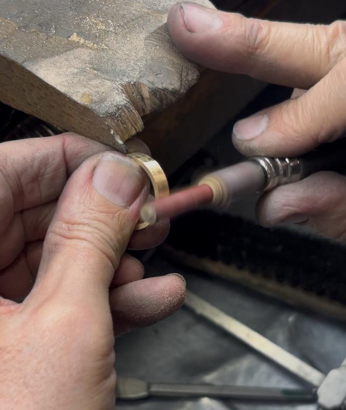 Alianzas de boda y compromiso artesanales, hechas a mano en su taller. Cita previa, trato cercano y joyas únicas con personalidad.