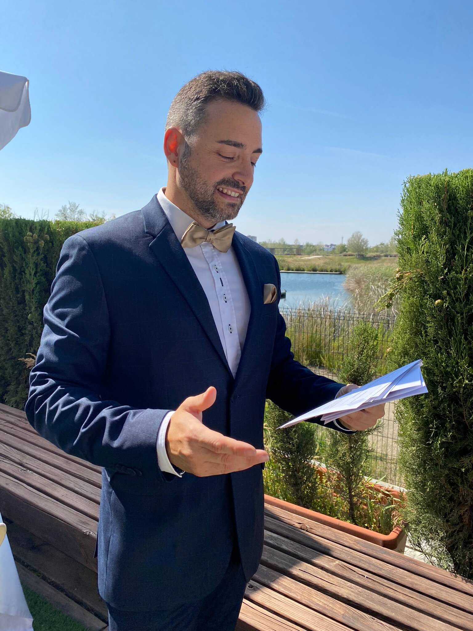 Su estilo combina emoción, elegancia y toques de humor, logrando una atmósfera íntima y auténtica que deja huella en todos los invitados. Jorge no solo dirige ceremonias, sino que las transforma en experiencias memorables, con palabras cuidadas y momentos que conectan con el corazón.