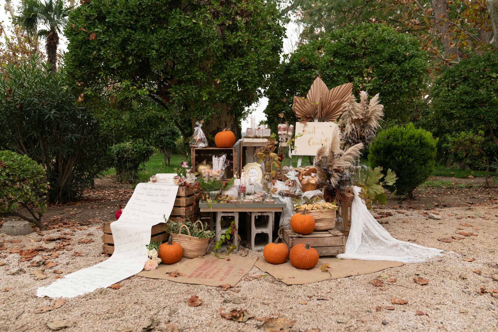 La organización coordinada por Carolina Diloy, Wedding & Event Planner en búsqueda constante de espacios y proveedores únicos, Naranja y media fotografía se encargó de captar todos los rincones, momentos y detalles con alma. Quisimos aprovechar la estación del año en la que estamos para disfrutar de los colores y luces que nos brinda el otoño, Seral Floristas quisieron plasmar esa magia del otoño en sus creaciones; rincones dulces creados y personalizados por Arte a Bocados contando la historia de amor de Pity y Ángel transmitiendo su dulzura y sus ganas de sorprender con rincones dulces especiales e innovadores.