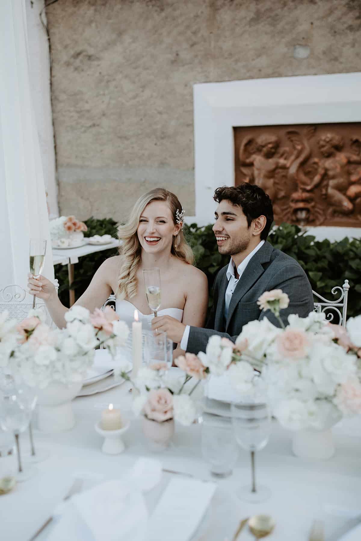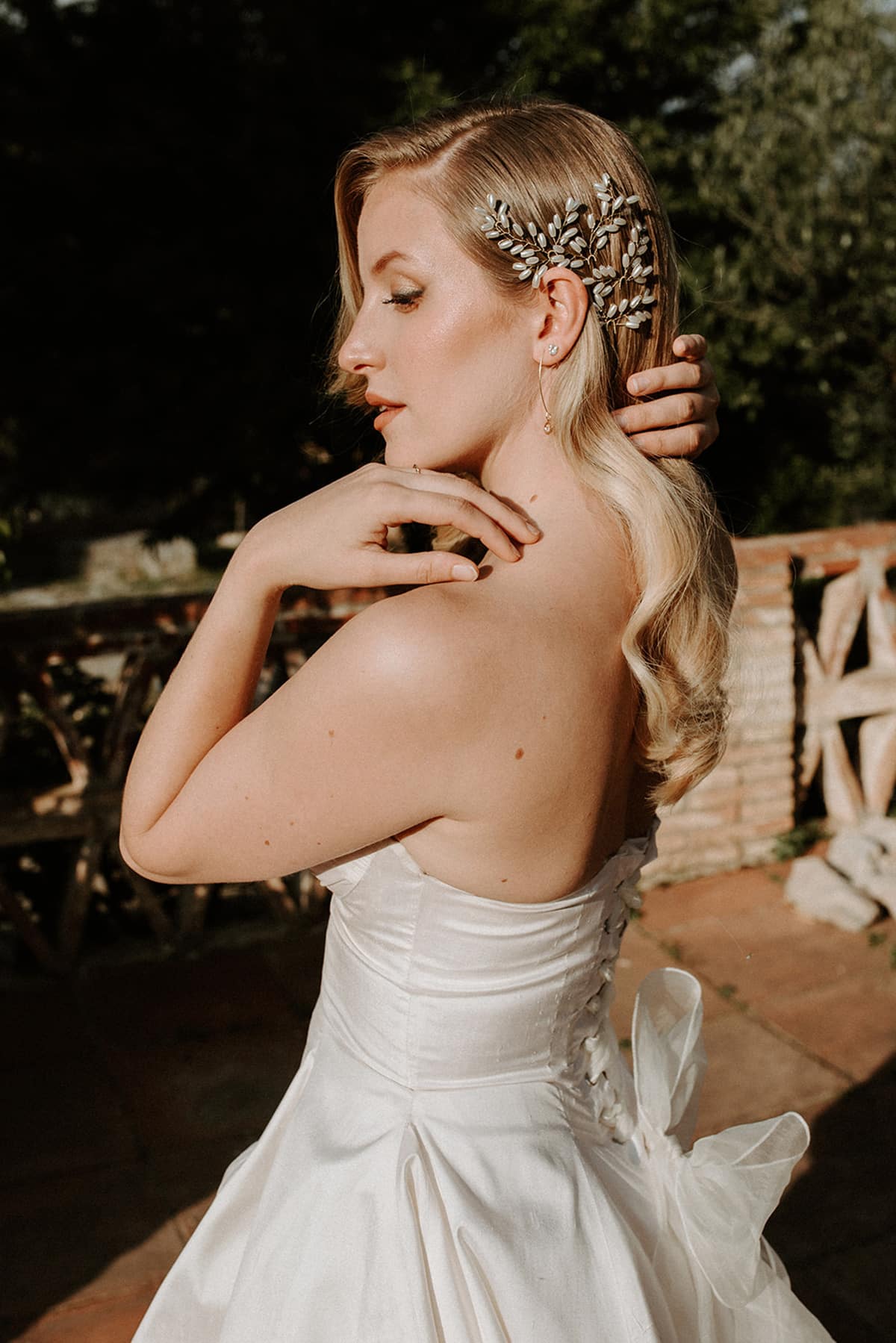 Complementando los looks, joyas y preciosos tocados escogidos con precisión y mimo por Maria Mestre como los recogidos y maquillajes, naturales y elegantes que Lucía Neri ejecutó para hacer brillar a la novia.