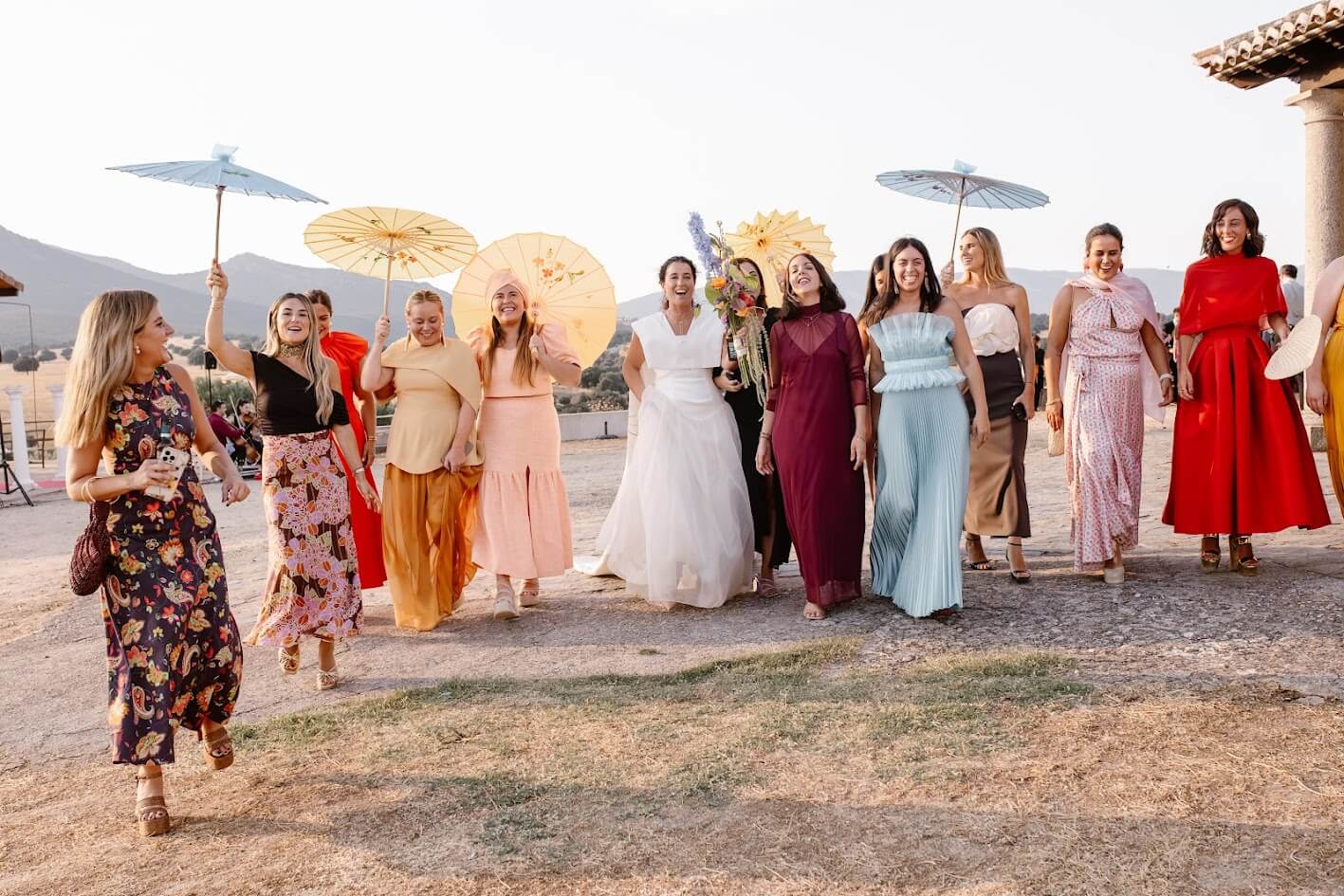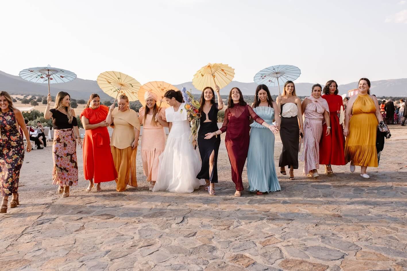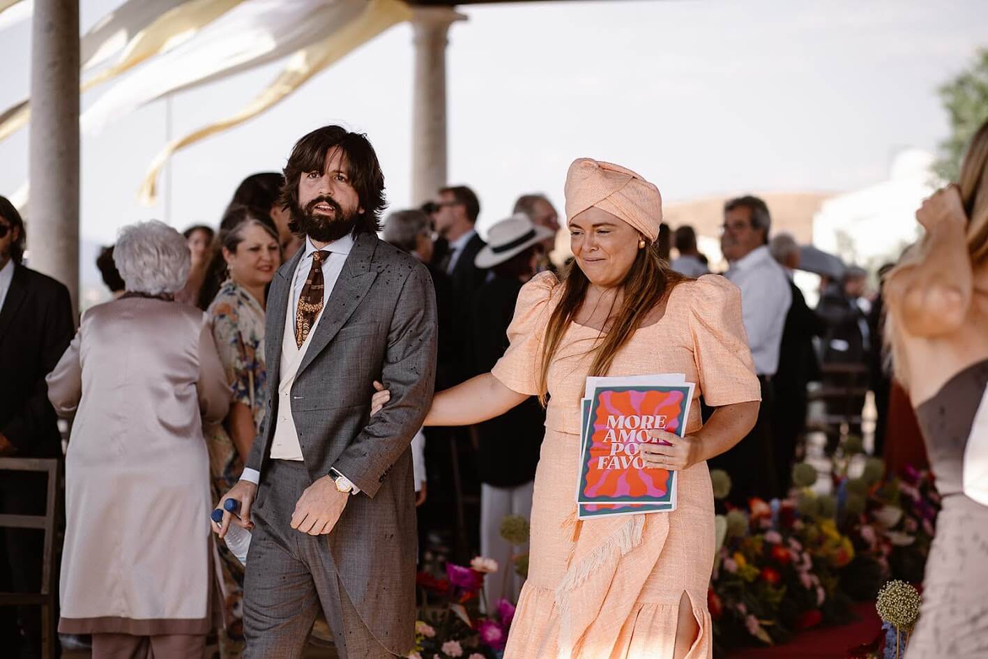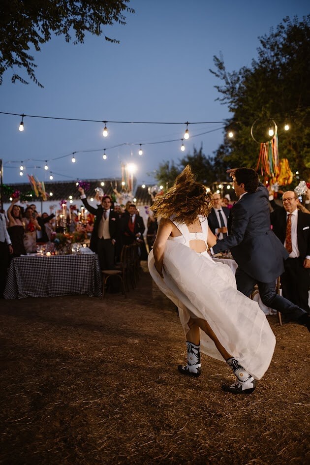 Y para terminar, lo hicieron por todo lo alto: una orquesta, porque ambos están muy vinculados a la vida de pueblo —Teresa a Ventas y Guille a Robledo de Chavela— y querían que su boda se sintiera como eso, una auténtica fiesta de pueblo, alegre, cercana y llena de vida.