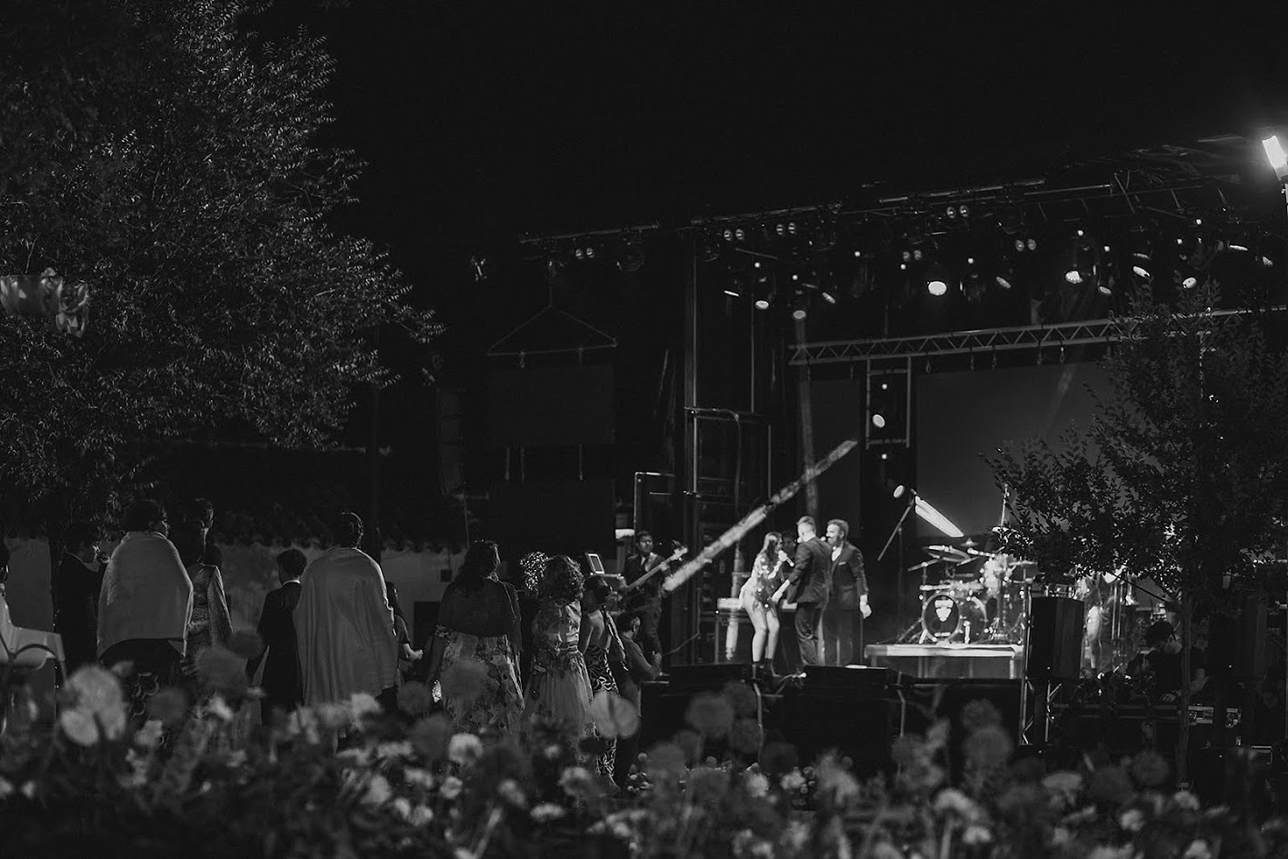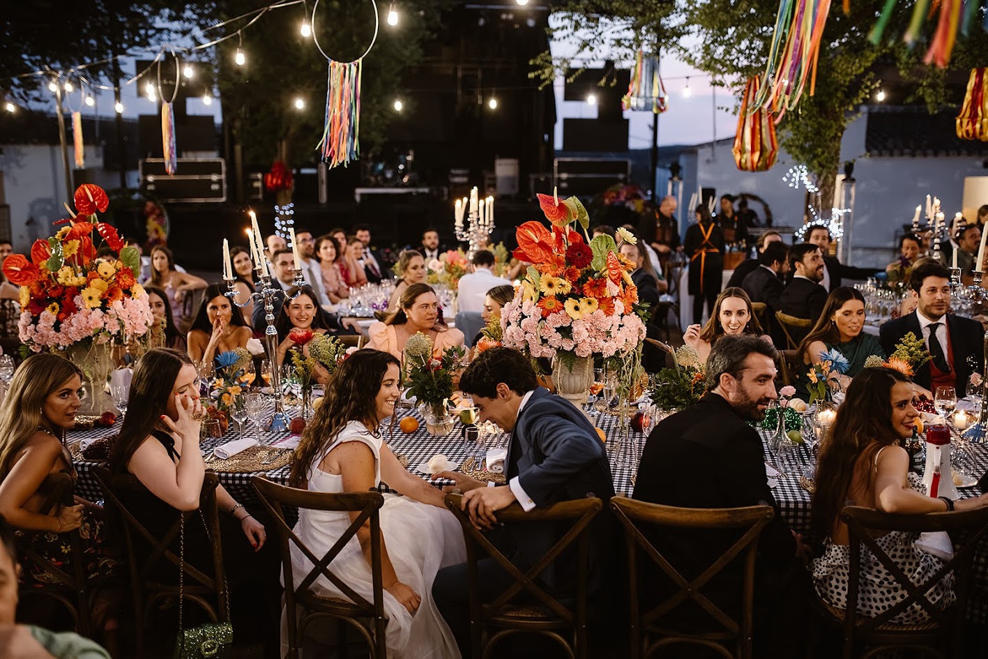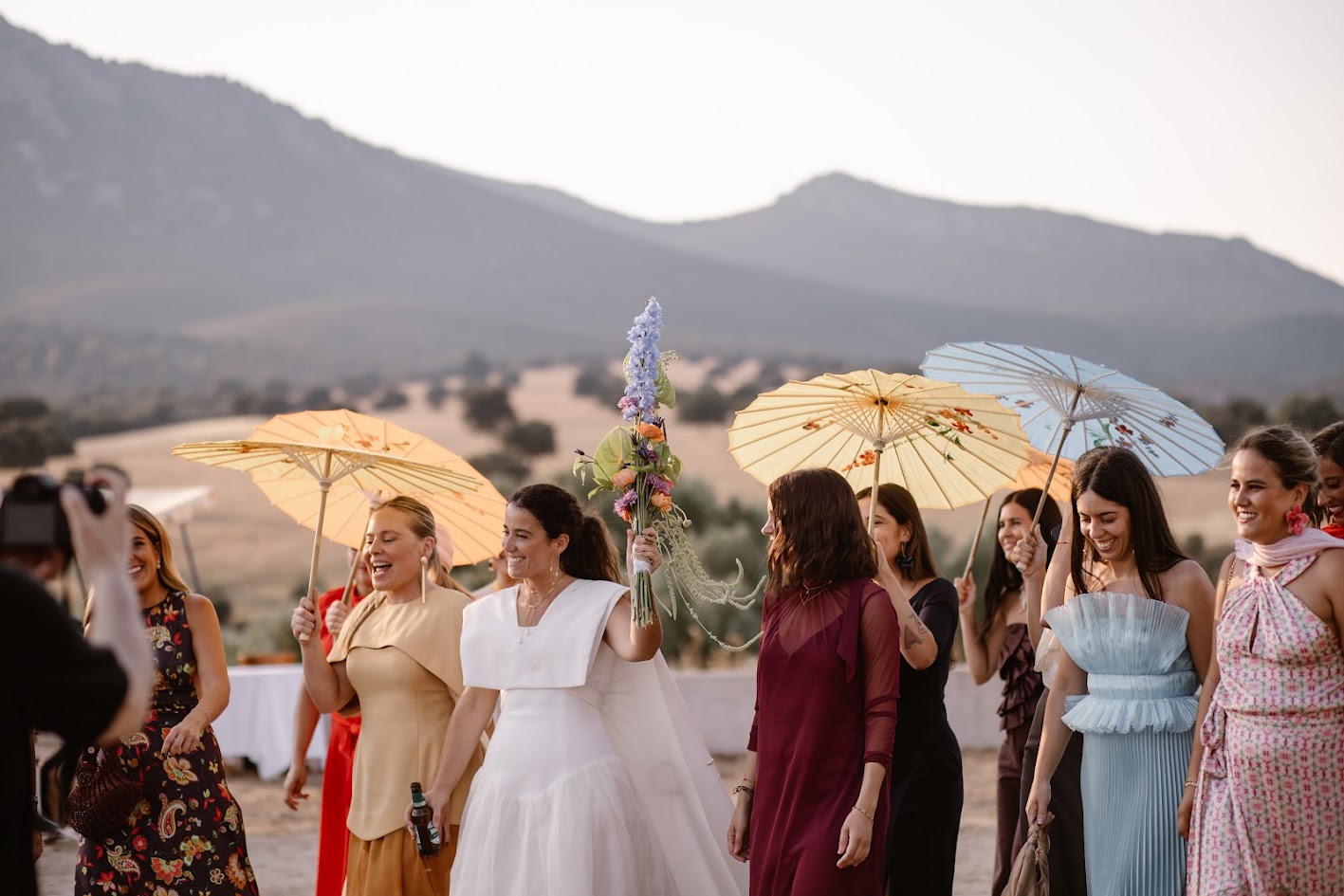 Y para terminar, lo hicieron por todo lo alto: una orquesta, porque ambos están muy vinculados a la vida de pueblo —Teresa a Ventas y Guille a Robledo de Chavela— y querían que su boda se sintiera como eso, una auténtica fiesta de pueblo, alegre, cercana y llena de vida.