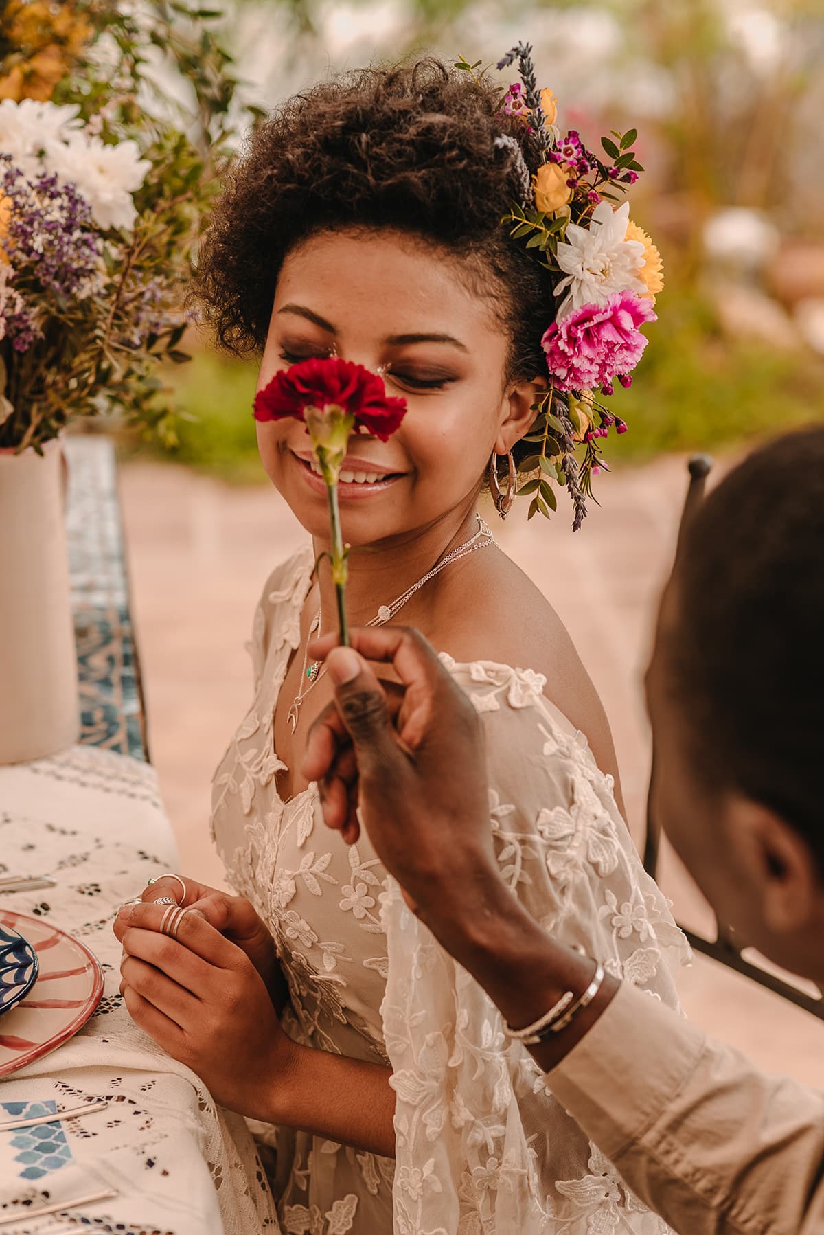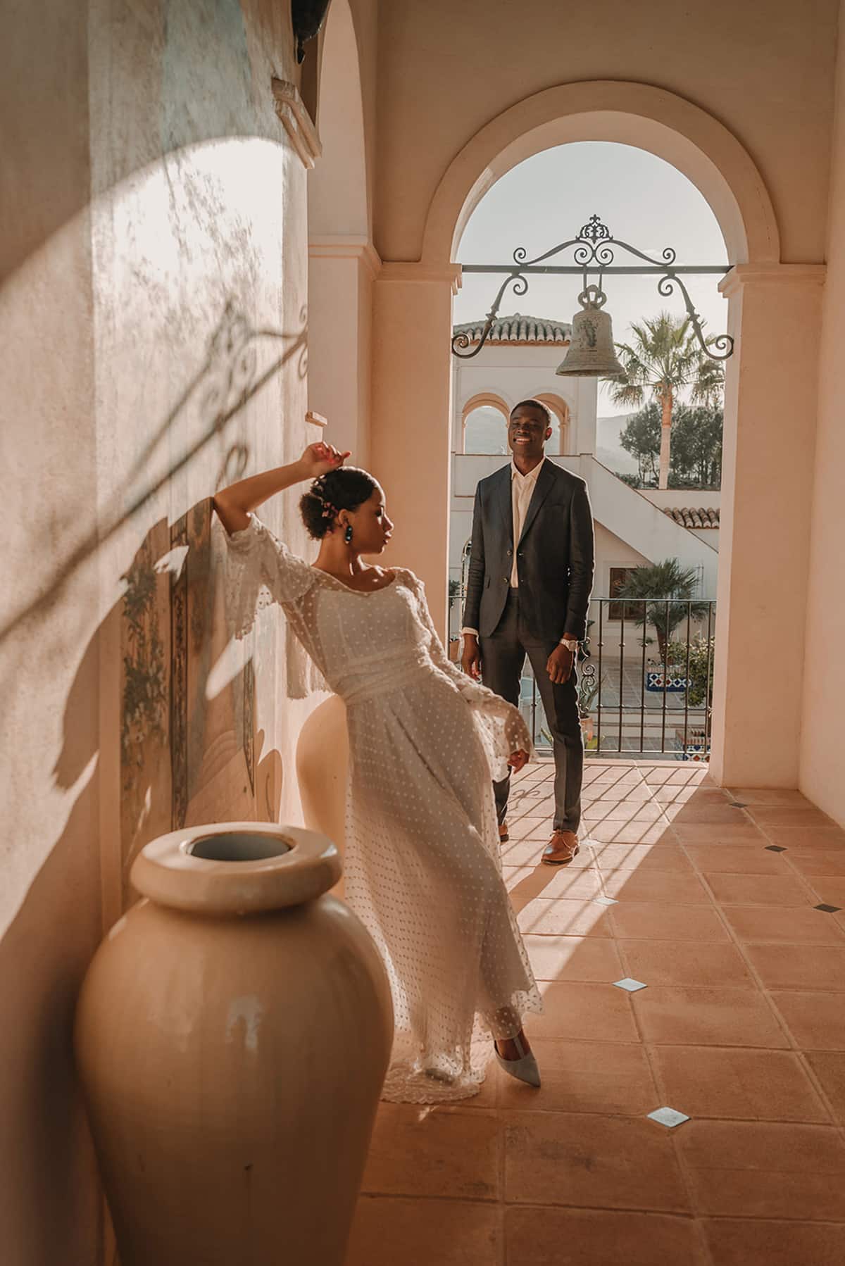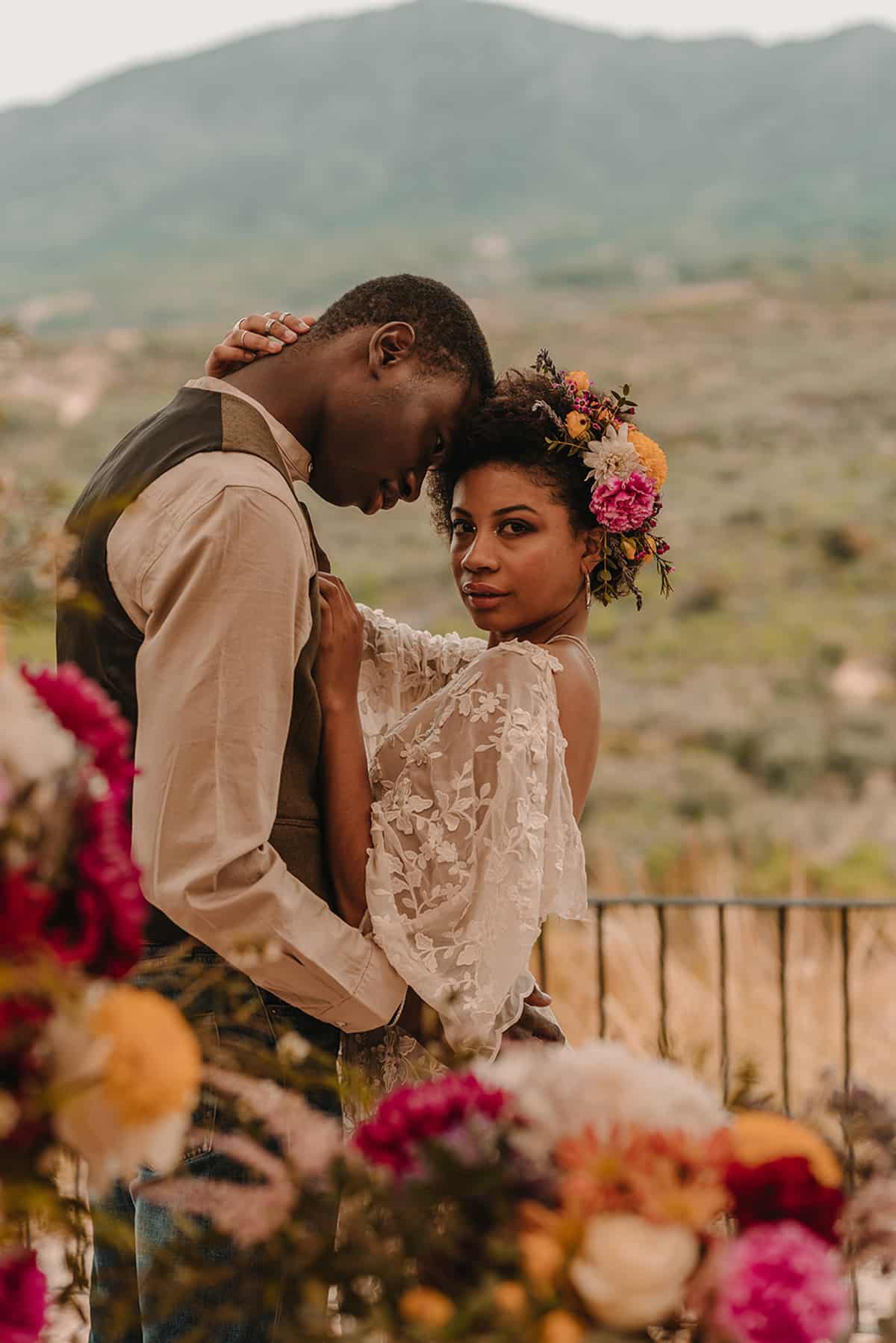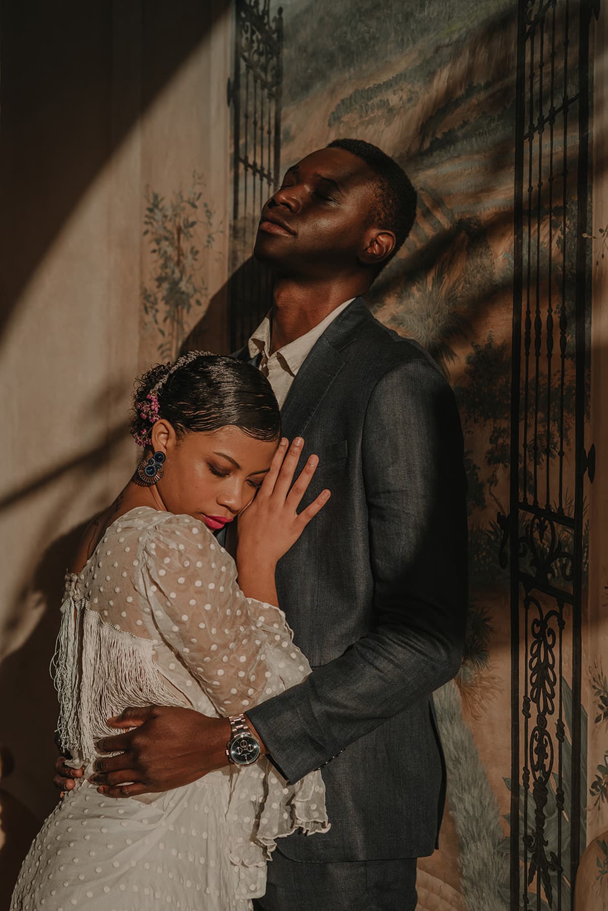 La etnia de nuestros protagonistas se mezcla con cada ápice granadino. Una editorial inspirada en la viveza de la cultura granadina, presente en cada flor, en cada elemento de su cerámica, en cada rama de su valle. Un fondo perfecto que arropa cualquier cultura sin importar su procedencia.