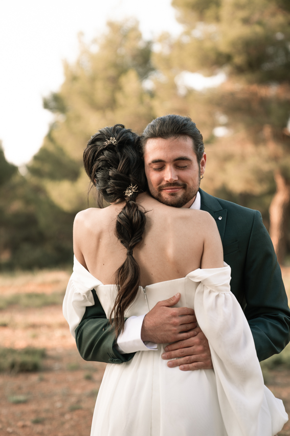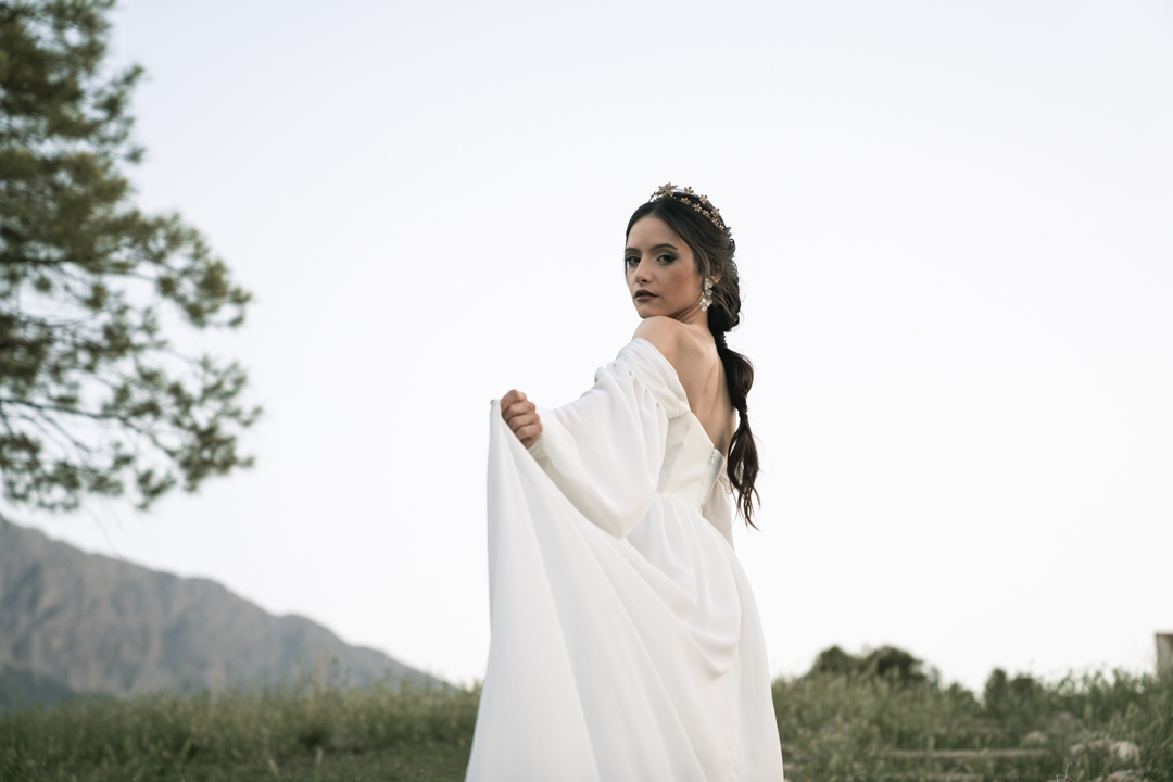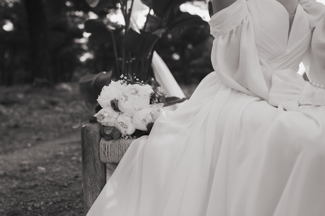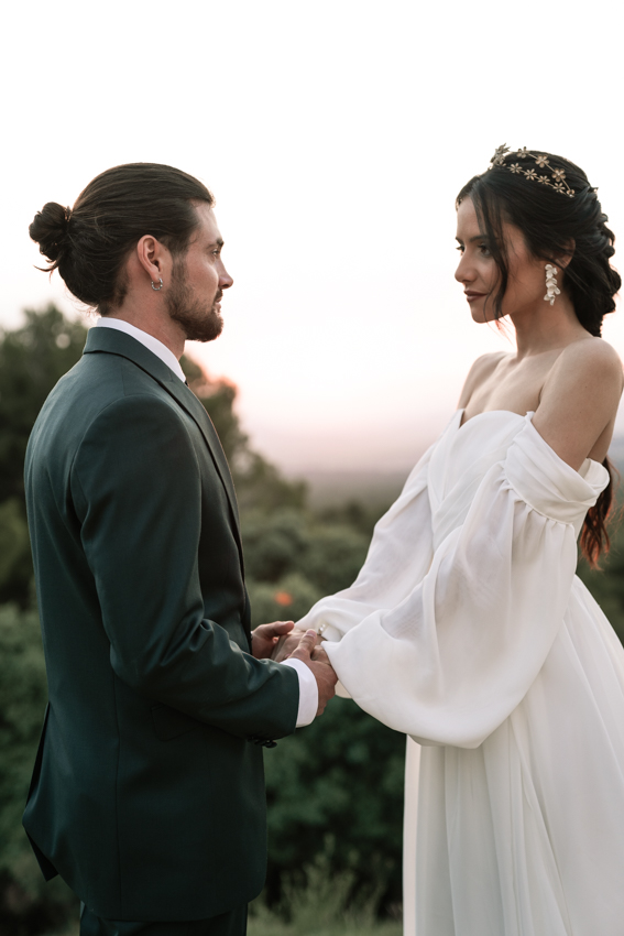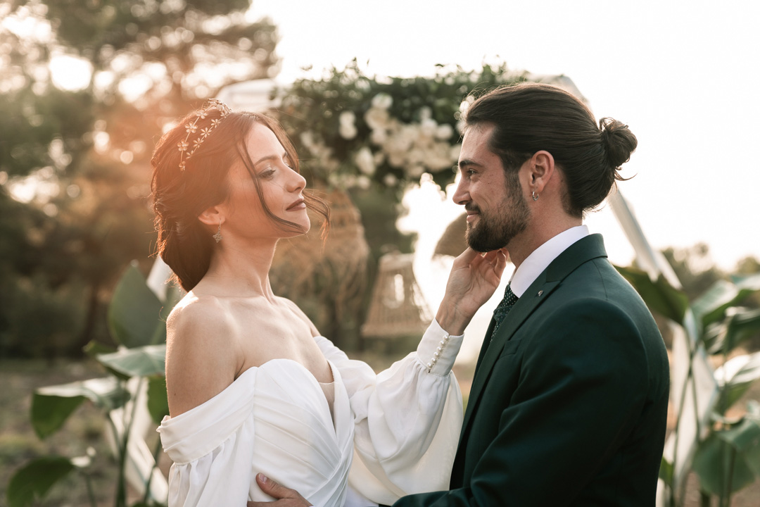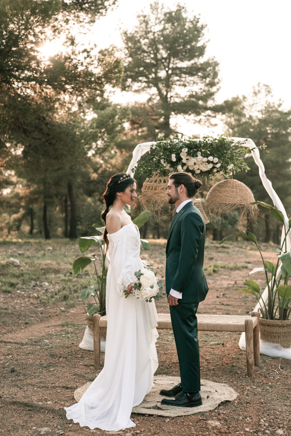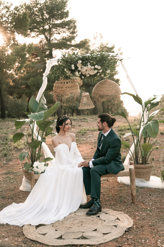En ella, cuidamos cada detalle, fusionando dos elementos claves: elegancia y simplicidad, con un ligero toque bohemio. Dándole protagonismo a un vestido vaporoso y suelto, reflejando la libertad de movimiento que acompaña la brisa, una corona que le aporta la fuerza necesaria, a través de la mirada dulce de él. Y lo más importante, una dosis de amor, donde la libertad, la complicidad y la unión se respiraba en todo momento.