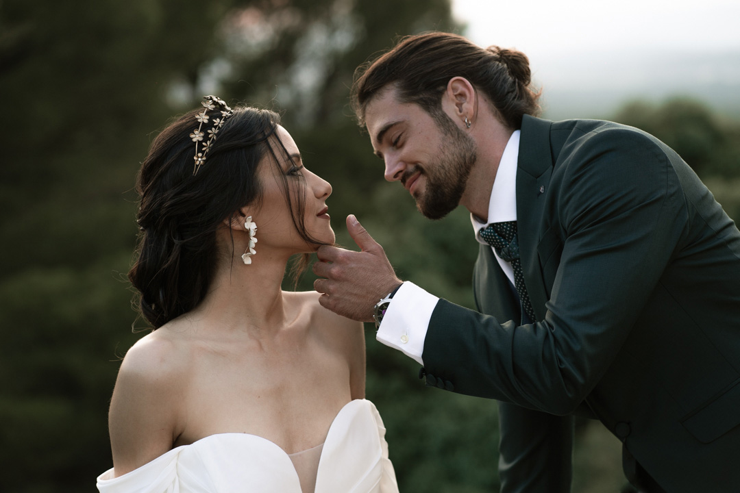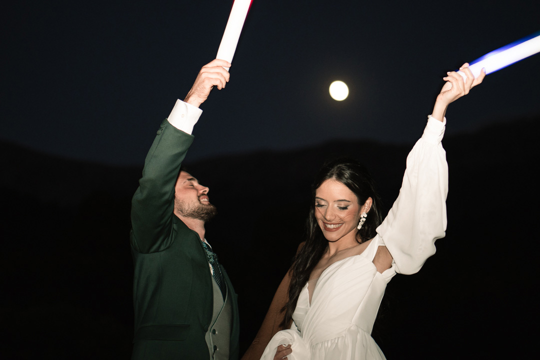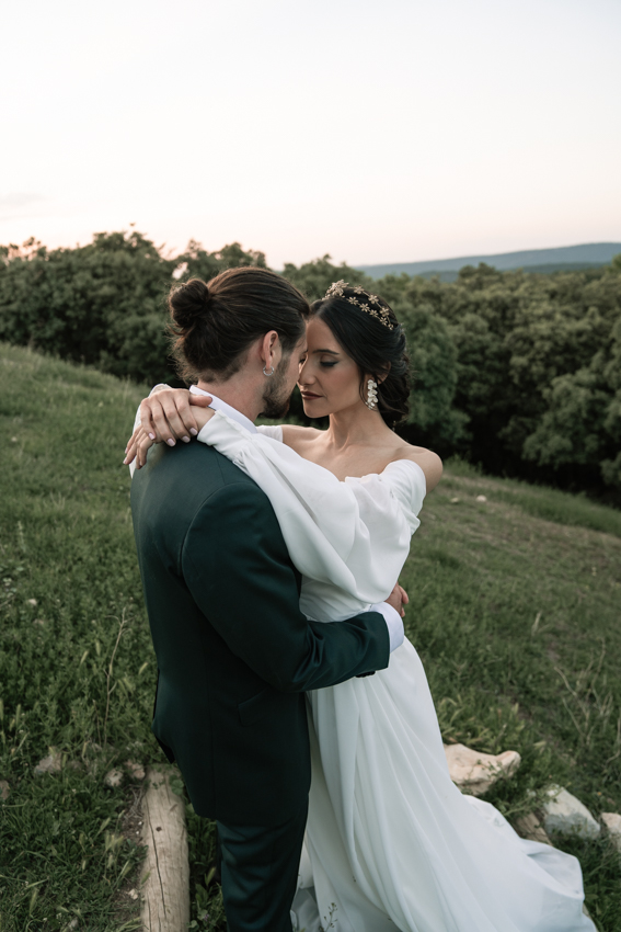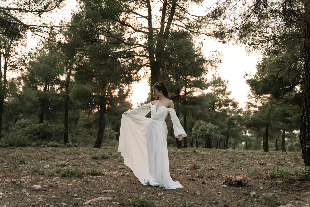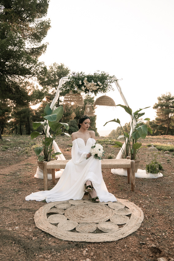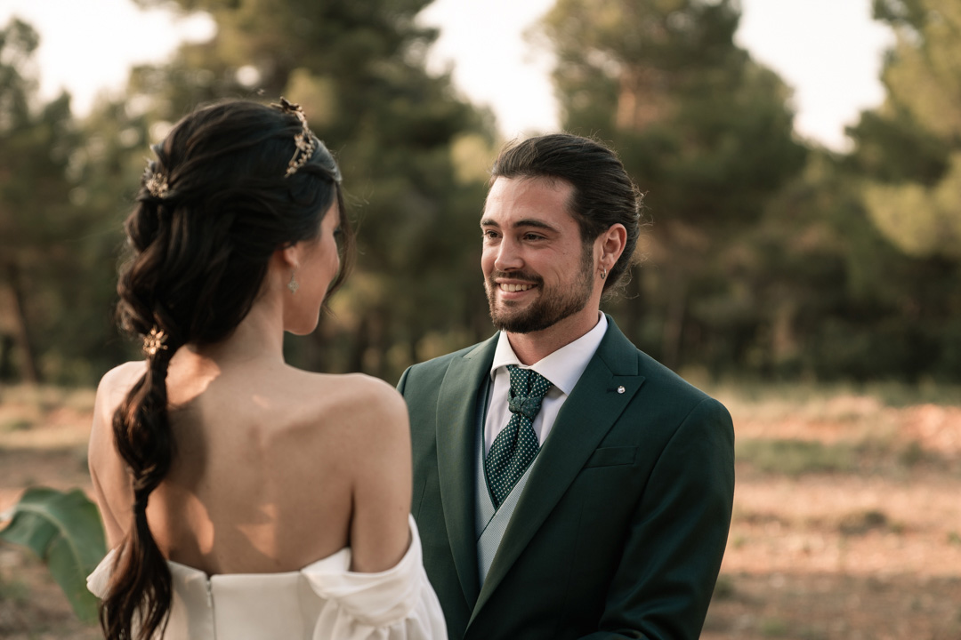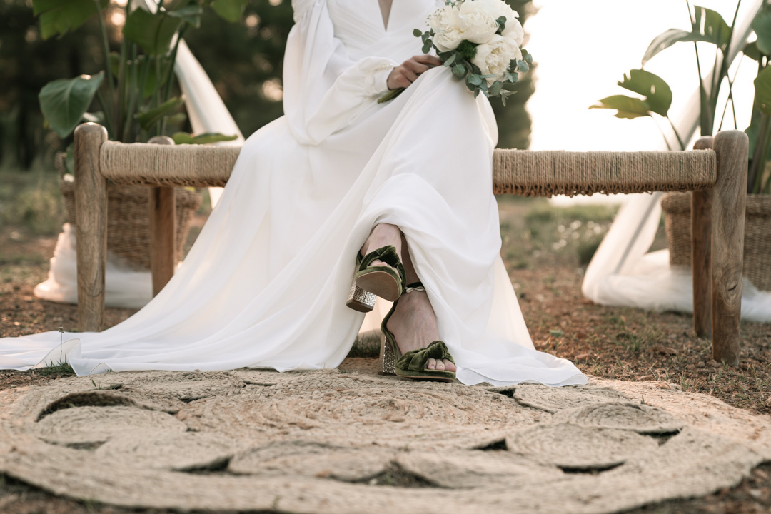 En ella, cuidamos cada detalle, fusionando dos elementos claves: elegancia y simplicidad, con un ligero toque bohemio. Dándole protagonismo a un vestido vaporoso y suelto, reflejando la libertad de movimiento que acompaña la brisa, una corona que le aporta la fuerza necesaria, a través de la mirada dulce de él. Y lo más importante, una dosis de amor, donde la libertad, la complicidad y la unión se respiraba en todo momento.