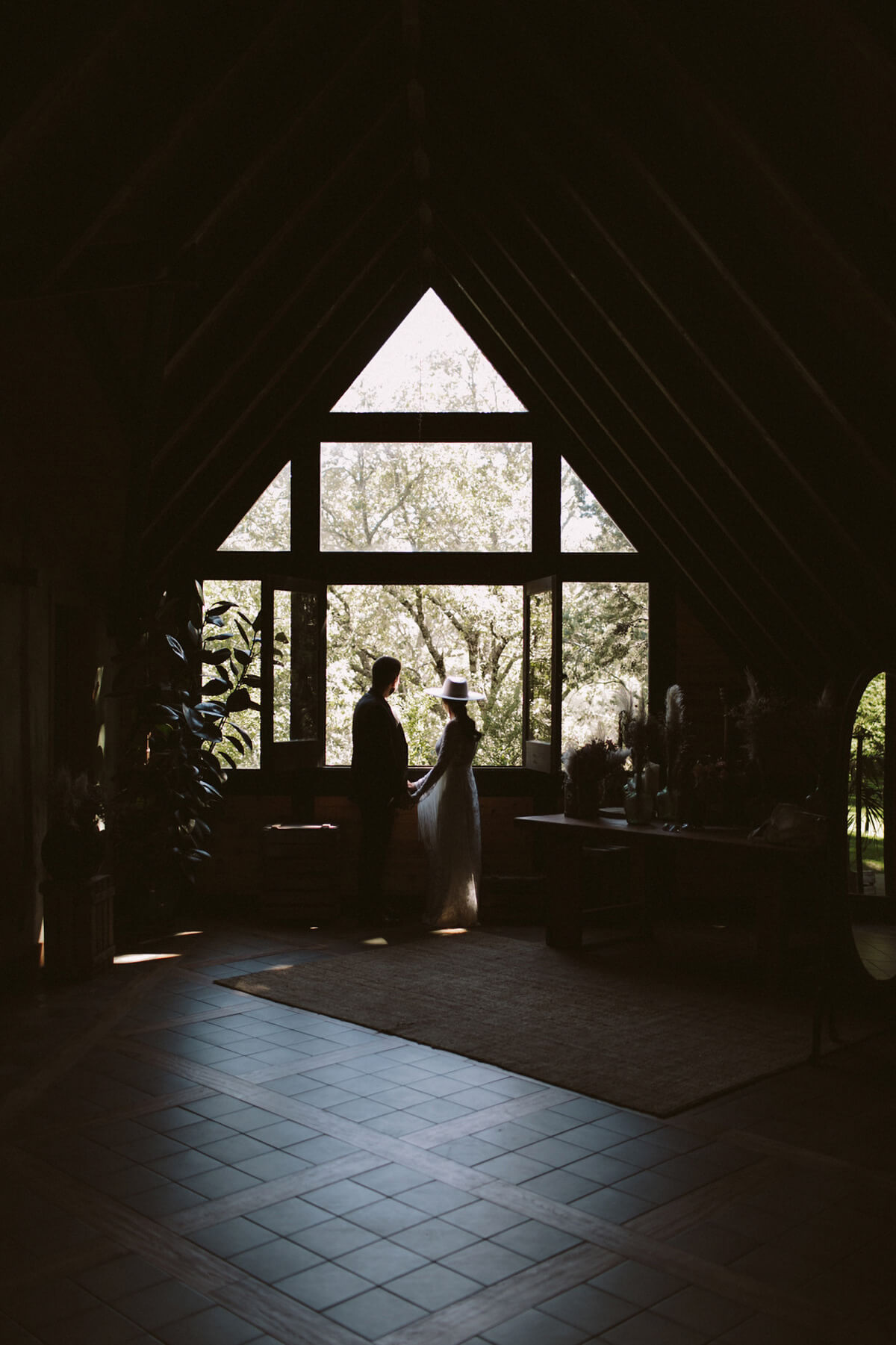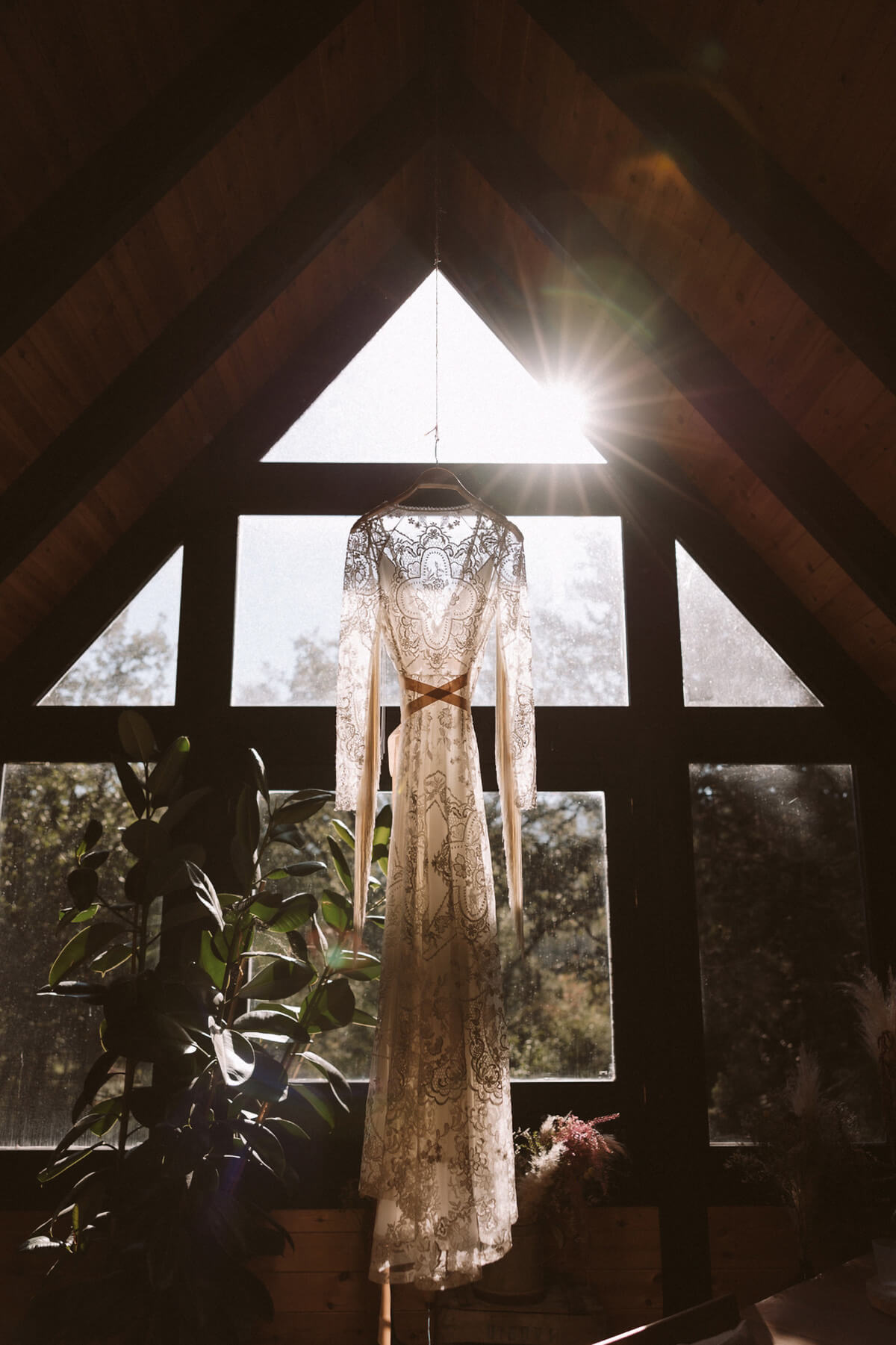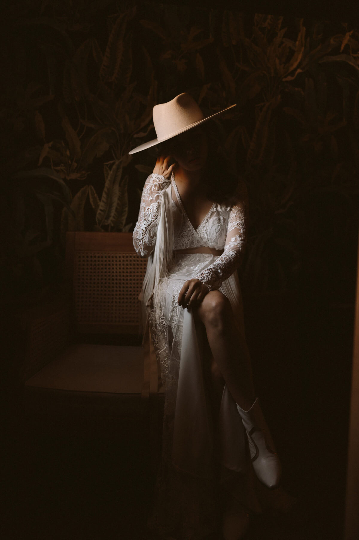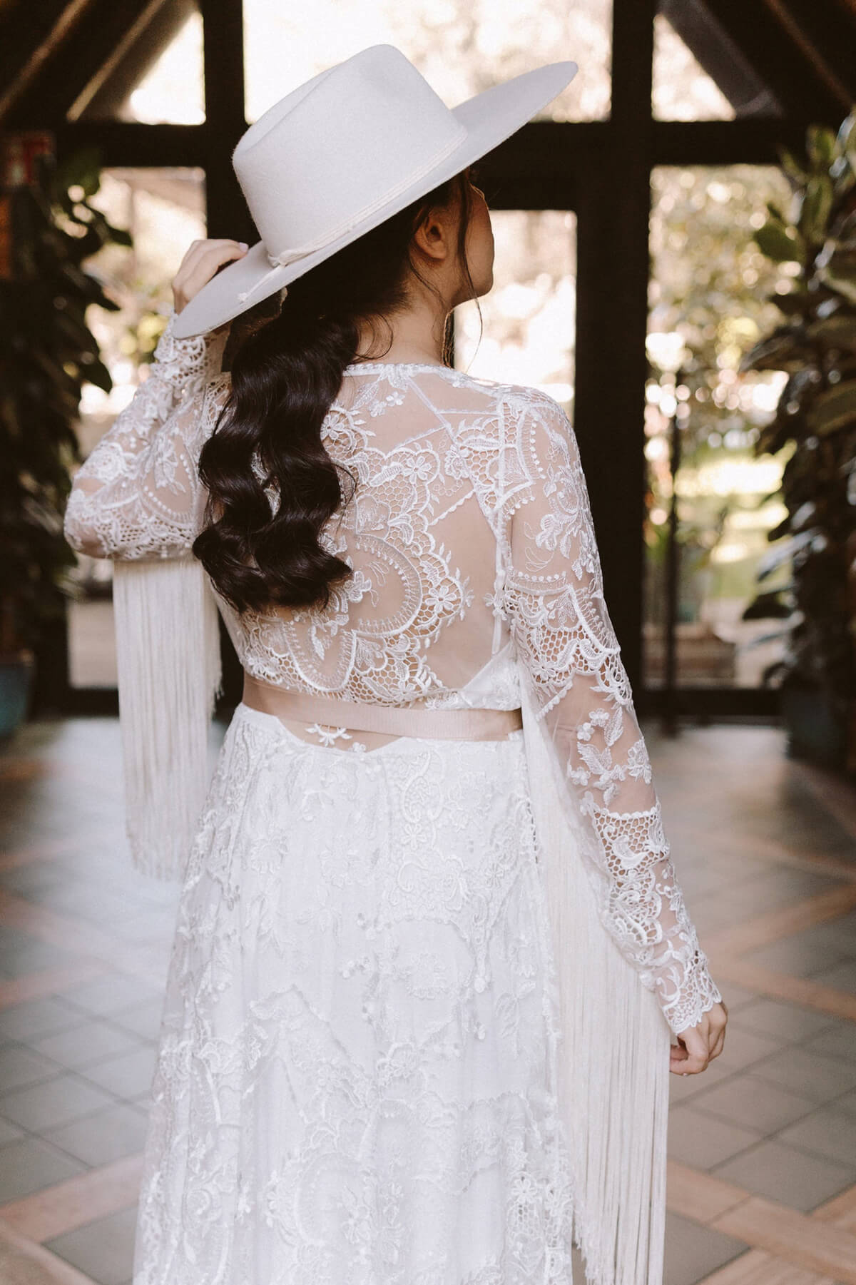 El día de la boda comenzó con una elección muy nosotros que fue vestirnos juntos y que nos aportó un momento tranquilo, íntimo y especial. Del estilismo de Lorena se encargó Paula Guzmán, del vestido Immaclé y los complementos venían de la mano: las botas de Immaclé, el sombrero Raceu hats y las gafas de Prada. Sergio eligió un traje de Hugo Boss y apostó por un look total Black.