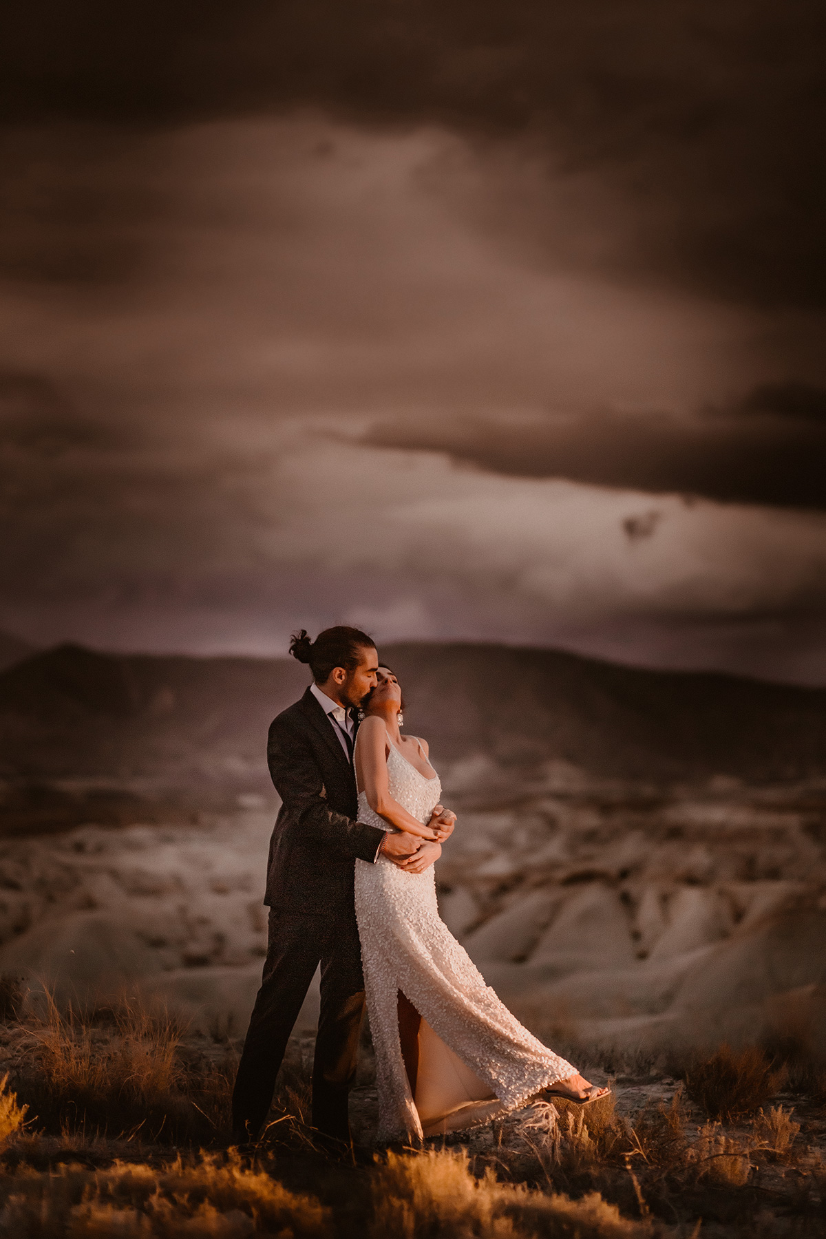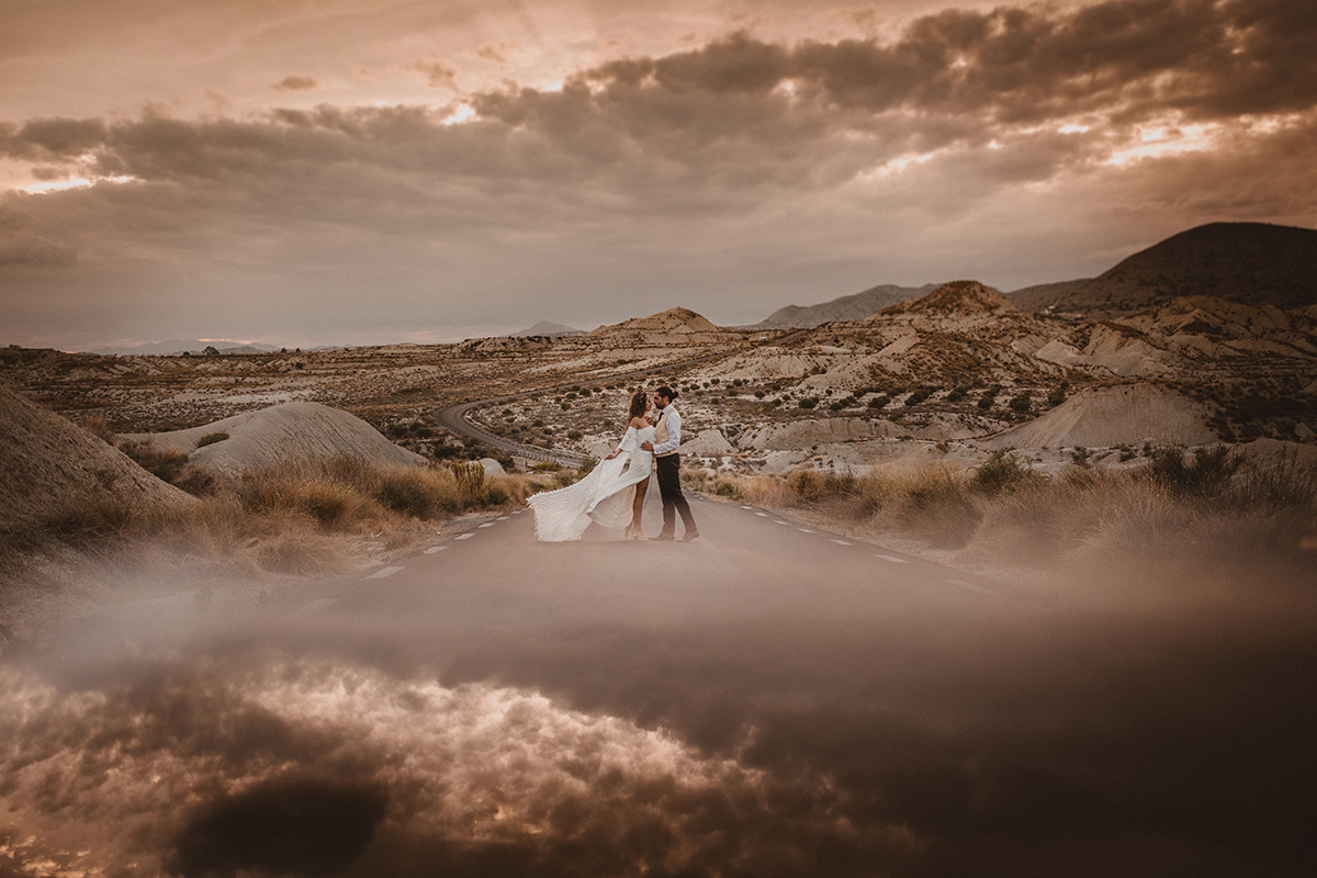 Nunca esta palabra había significado tanto, cuando sumas la conexión de dos personas, el hallazgo de un lugar increíble por casualidad y un atardecer nublado sin saber cuál sería el resultado, donde tuvimos que sacar nuestra magia para que finalmente, los colores del cielo se fundieran con los del desierto, donde caminar por un desierto formado por fondo marino fue el escenario perfecto para acabar el último frenesí de la historia de una pareja.