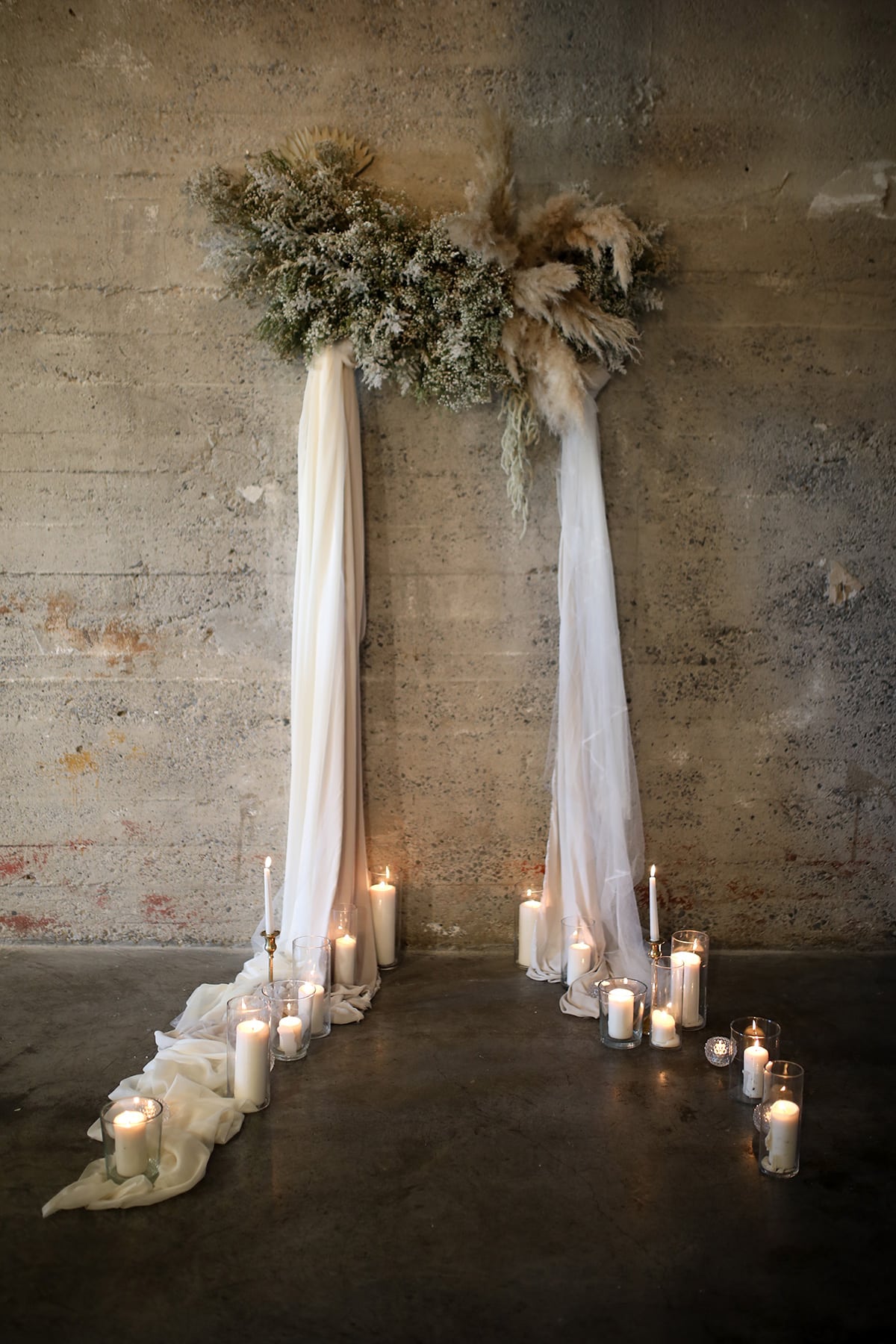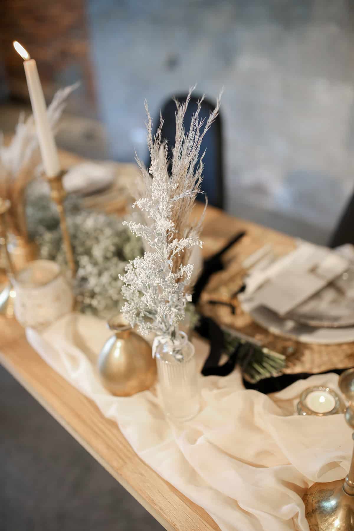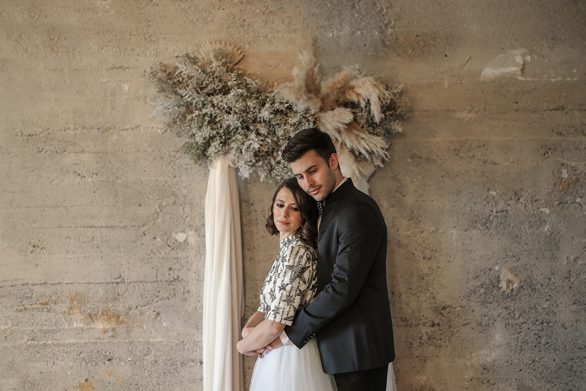 El lugar seleccionado, El Silo, un enclave sobrio, con toques industriales y espacio diáfano al que aportamos calor y elegancia con una decoración natural y envolvente diseñada por Ainara Pascua e Izaro de Deaudikana que se encargó de la decoración floral y ese ramo alucinante de paniculata.