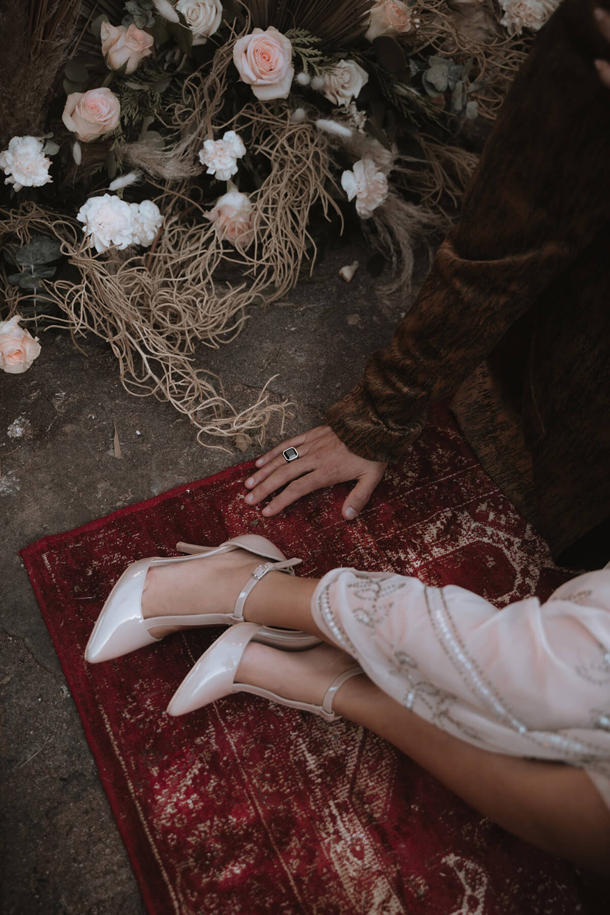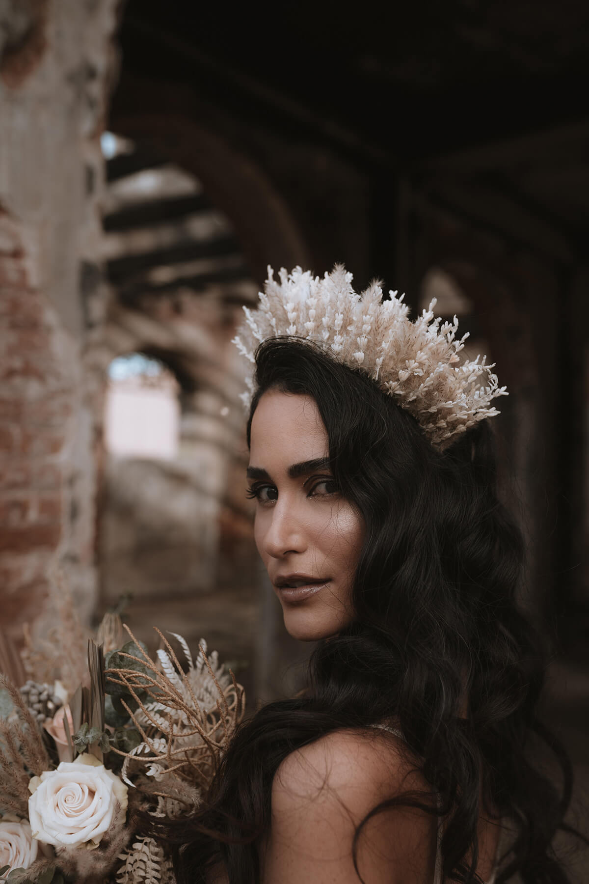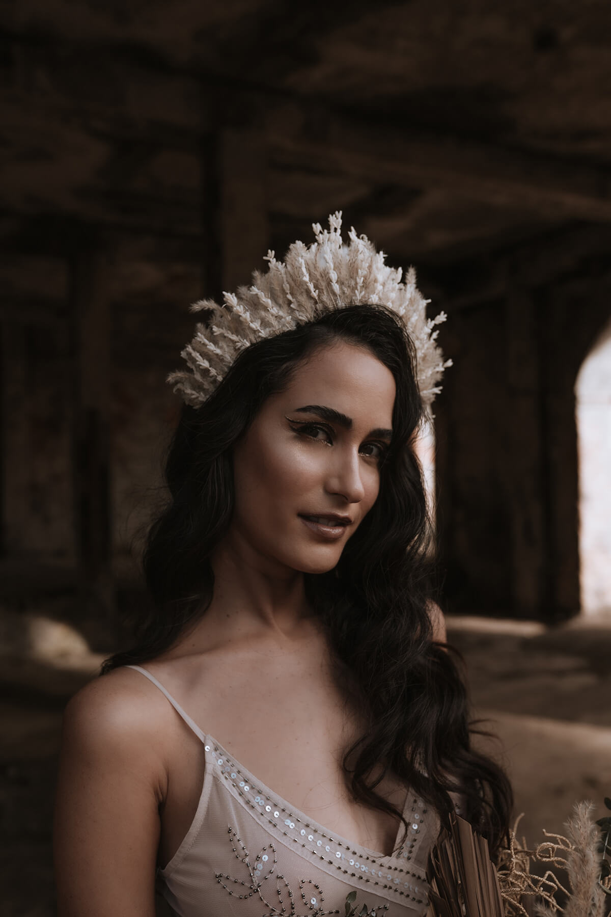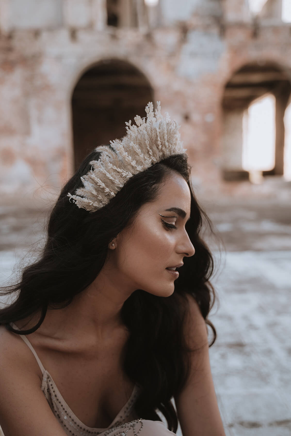 Texto @artonico.stories | “Te Imaginé» se inspiró en traer una mezcla de lo audaz con lo elegante y ecléctico. Esto se logra al incluir diferentes elementos que hacen de esta una combinación perfecta. El estilo de vestimenta poco convencional de la novia y el novio, en lugar del uso de los trajes de boda tradicionales. Además, los detalles del maquillaje de la novia y los colores poco convencionales del esmoquin y las zapatillas del novio. Además, las ruinas de un edificio abandonado que data de los años 1800 para traer una cierta mística al conjunto; sensación de concepto de fuga.