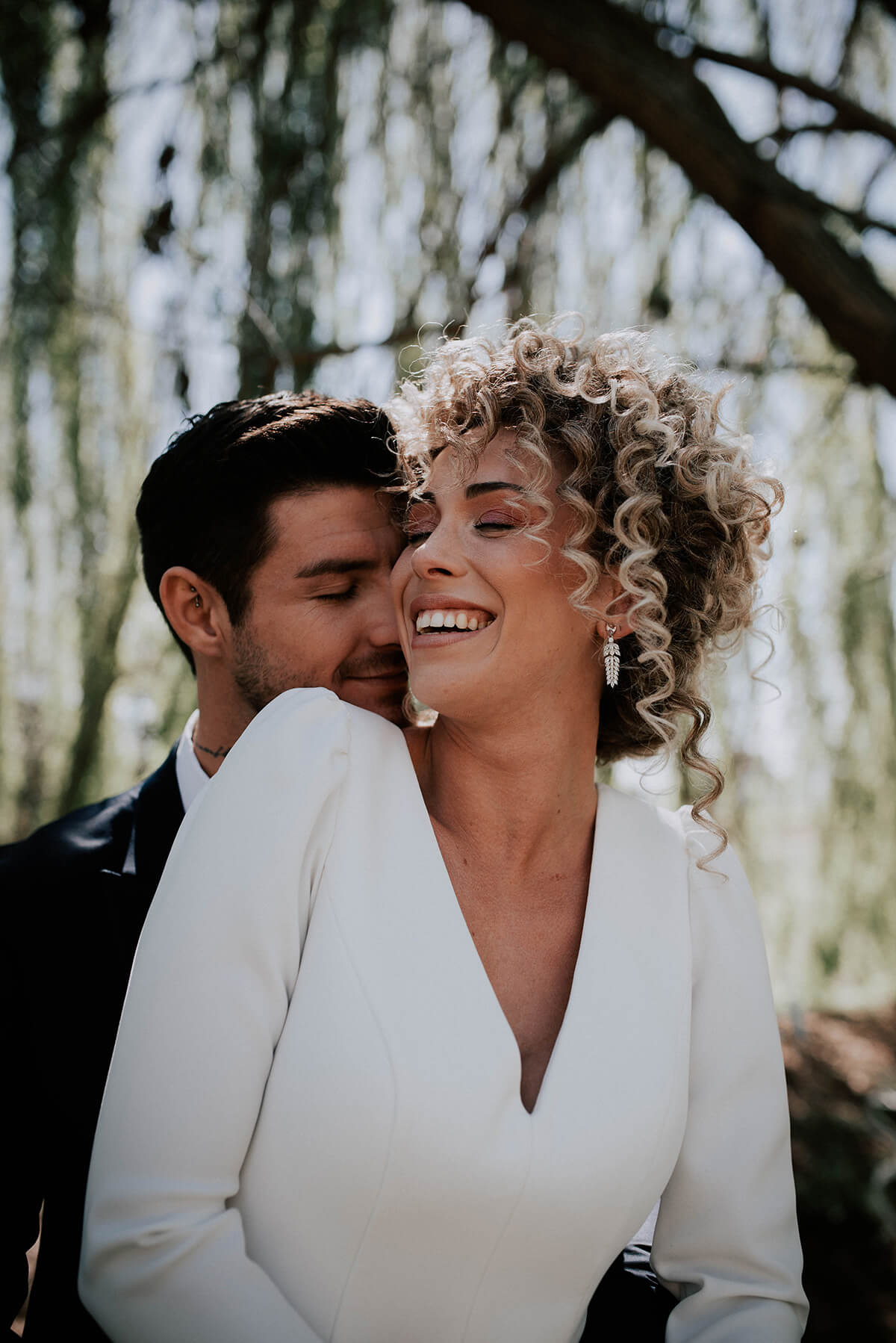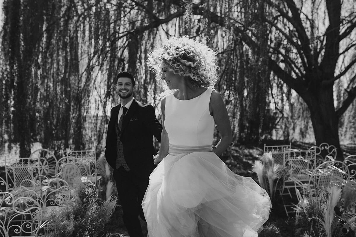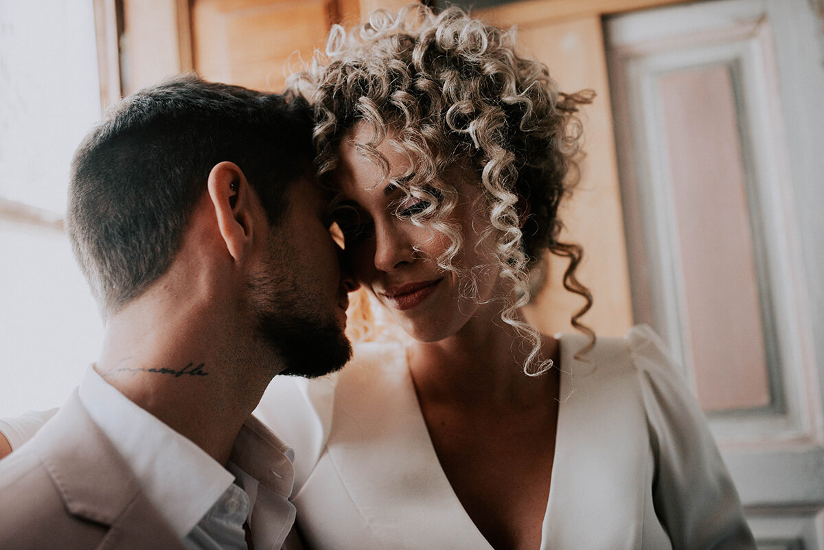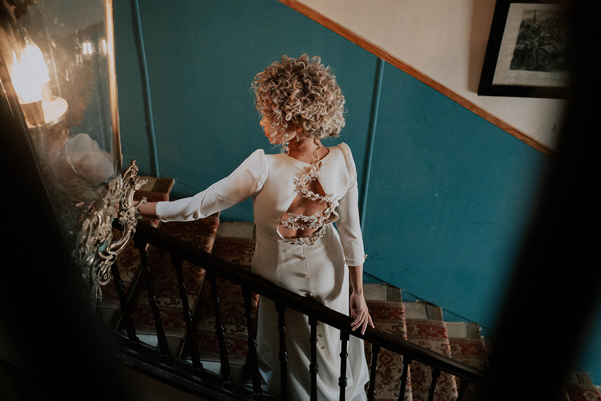 Uno de los puntos fuertes de este reportaje fue el cabello de la novia, rizado y poco convencional. Lorena y Susana de Negro y Plata fueron las peluqueras que se encargaron de dar forma a esta preciosa melena mostrando una imagen diferente y rompedora. Nuria San Miguel, apasionada de la estética e imagen personal, fue la maquilladora para la ocasión.