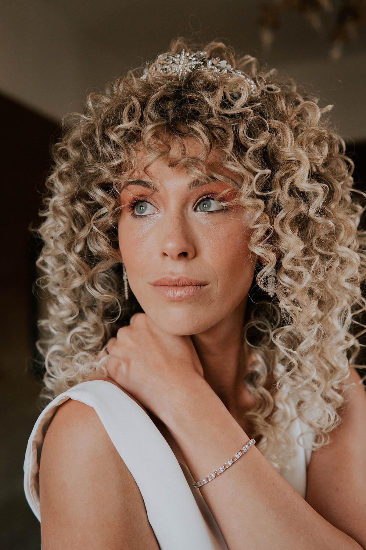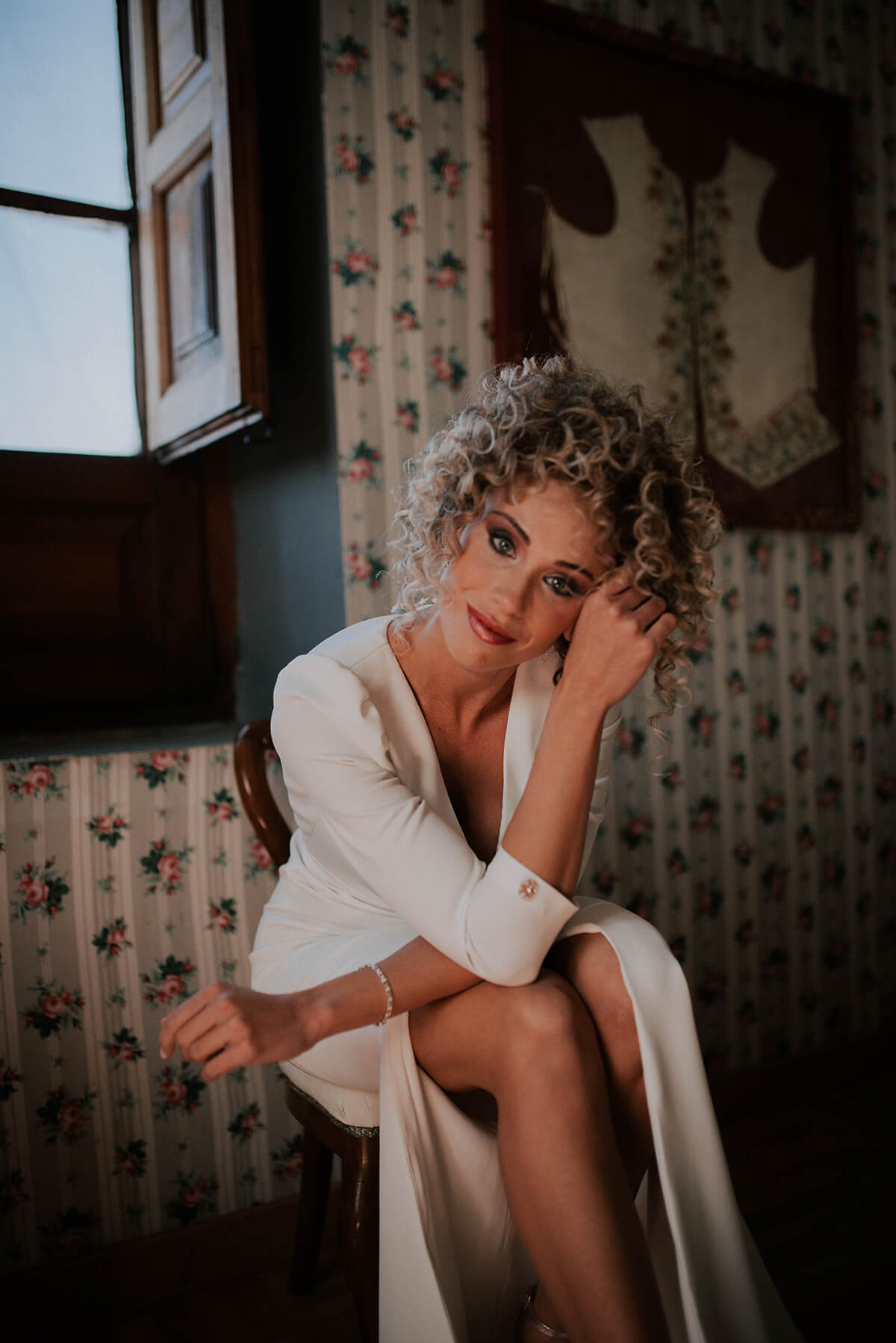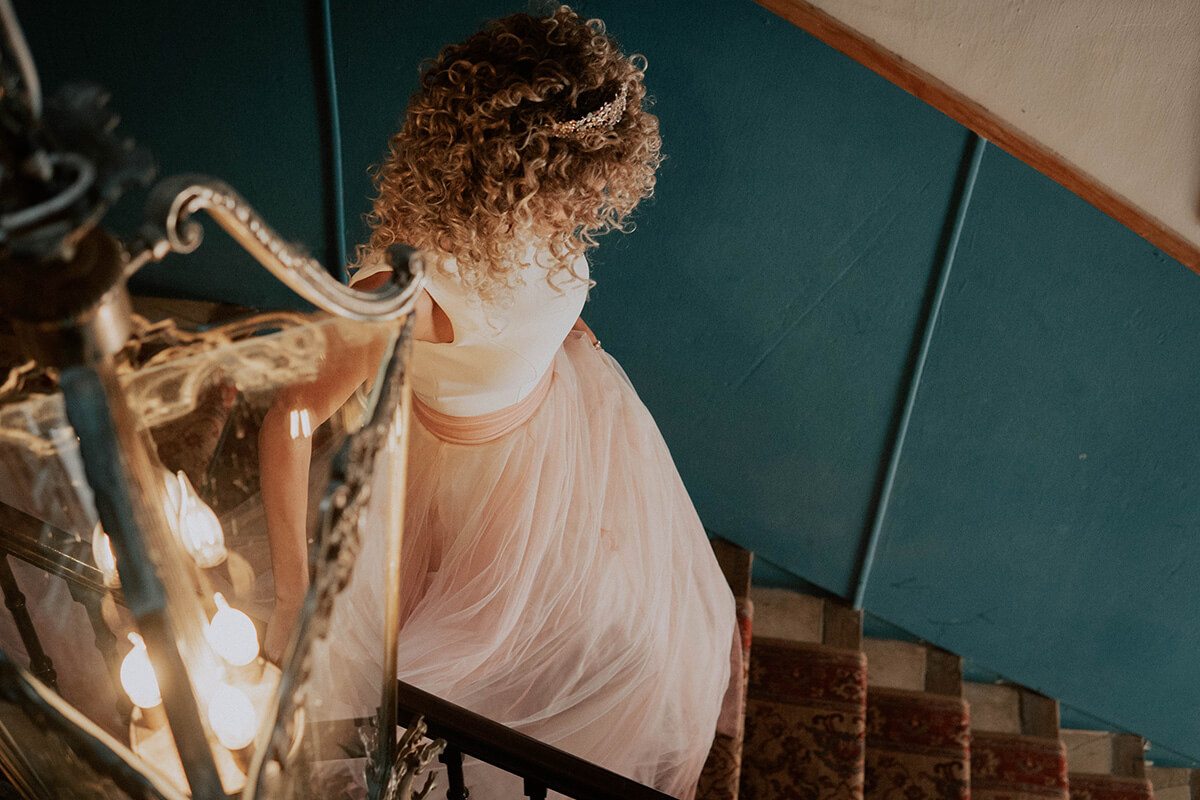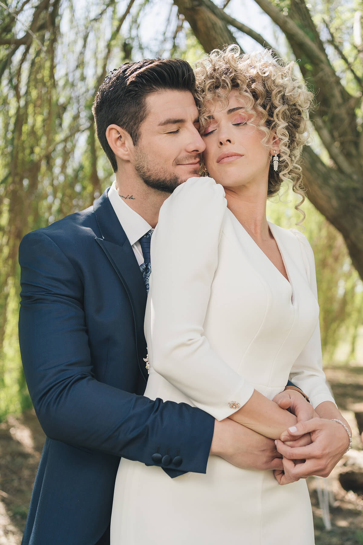 Uno de los puntos fuertes de este reportaje fue el cabello de la novia, rizado y poco convencional. Lorena y Susana de Negro y Plata fueron las peluqueras que se encargaron de dar forma a esta preciosa melena mostrando una imagen diferente y rompedora. Nuria San Miguel, apasionada de la estética e imagen personal, fue la maquilladora para la ocasión.