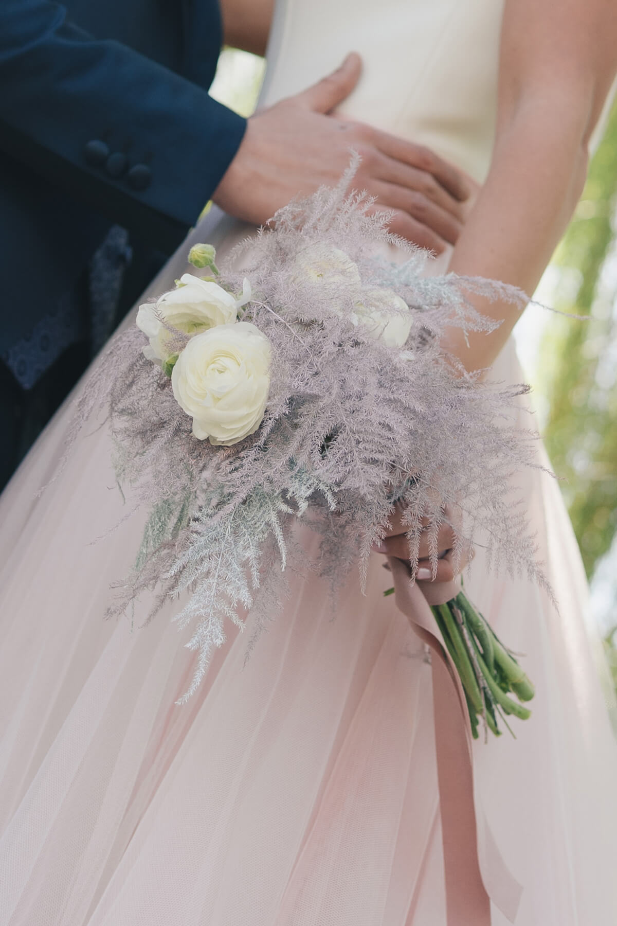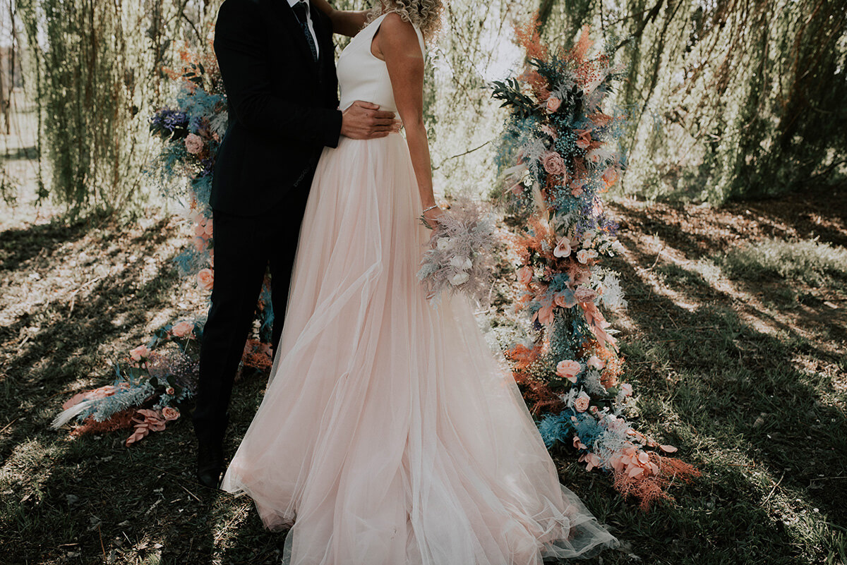 Para esta ocasión, Lorena ha trabajado mano a mano con la diseñadora de tocados Sigrid Sirvent de Bodas de Tul que, con la misma idea, formó parte de la organización y la creación de este shooting. Ella además, quiso capturar un trozo de esa primavera florida y romántica y colocarlo en la espalda del vestido de la novia, una idea rompedora y bastante diferente a los tocados que suele diseñar.