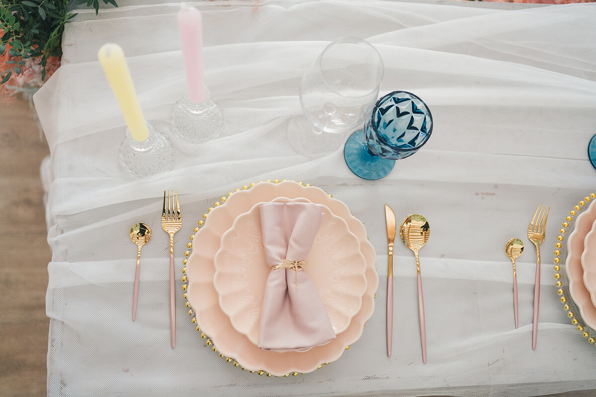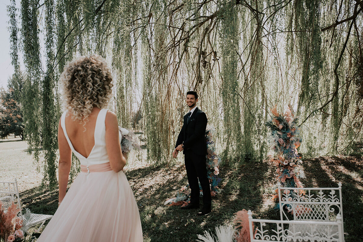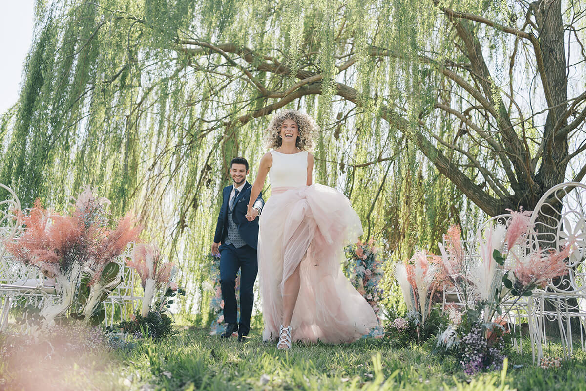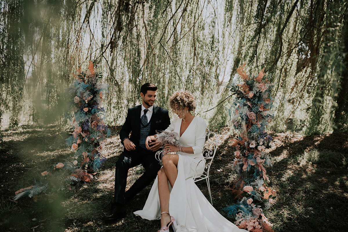 Lorena Grima, wedding planner de Boda Paradiso, diseñó una boda a medida para esta presentación. Bajo su lema “bodas únicas y diferentes” quiso representar precisamente una boda al aire libre más allá de lo convencional, llena de alegría, colorido, vitalidad y sobre todo mucho romanticismo, ambiente que es trasladado posteriormente a un segundo escenario en el interior de un salón cottage francés en la finca Soto de Bruil en Zaragoza.